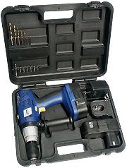 устройство, 2 аккумулятора 1,3 Ач, 8 бит, 6 сверел HSS, кейс |